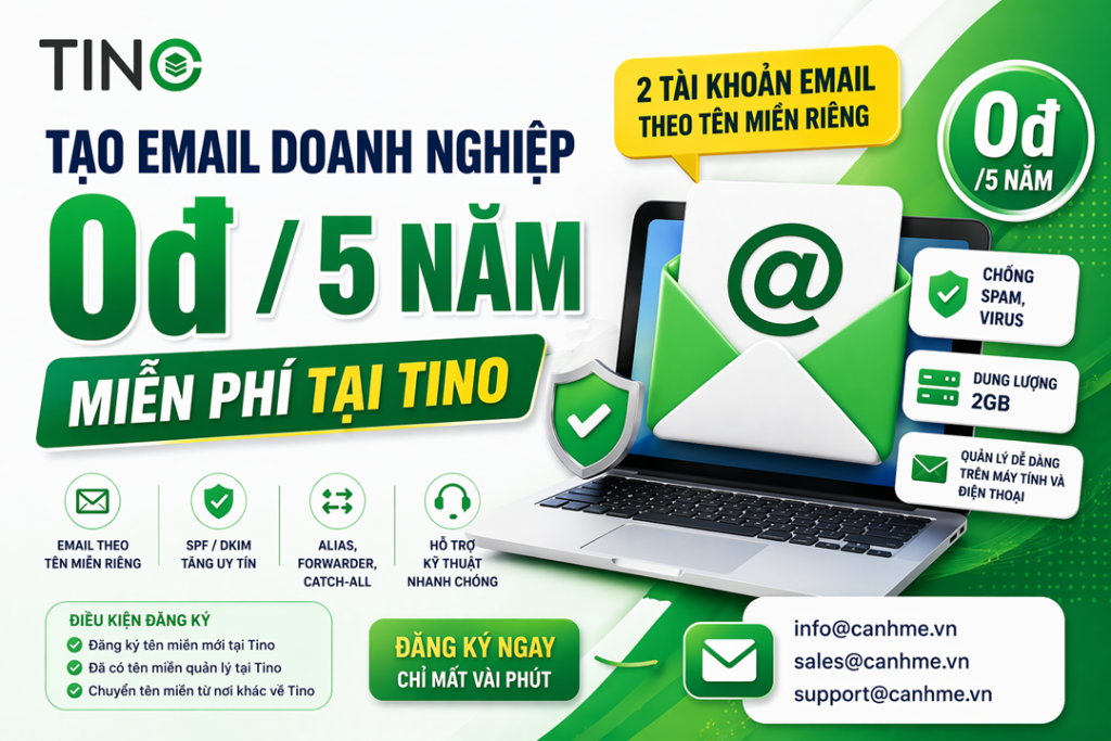Miễn phí Email doanh nghiệp 0đ/5 năm tại Tino